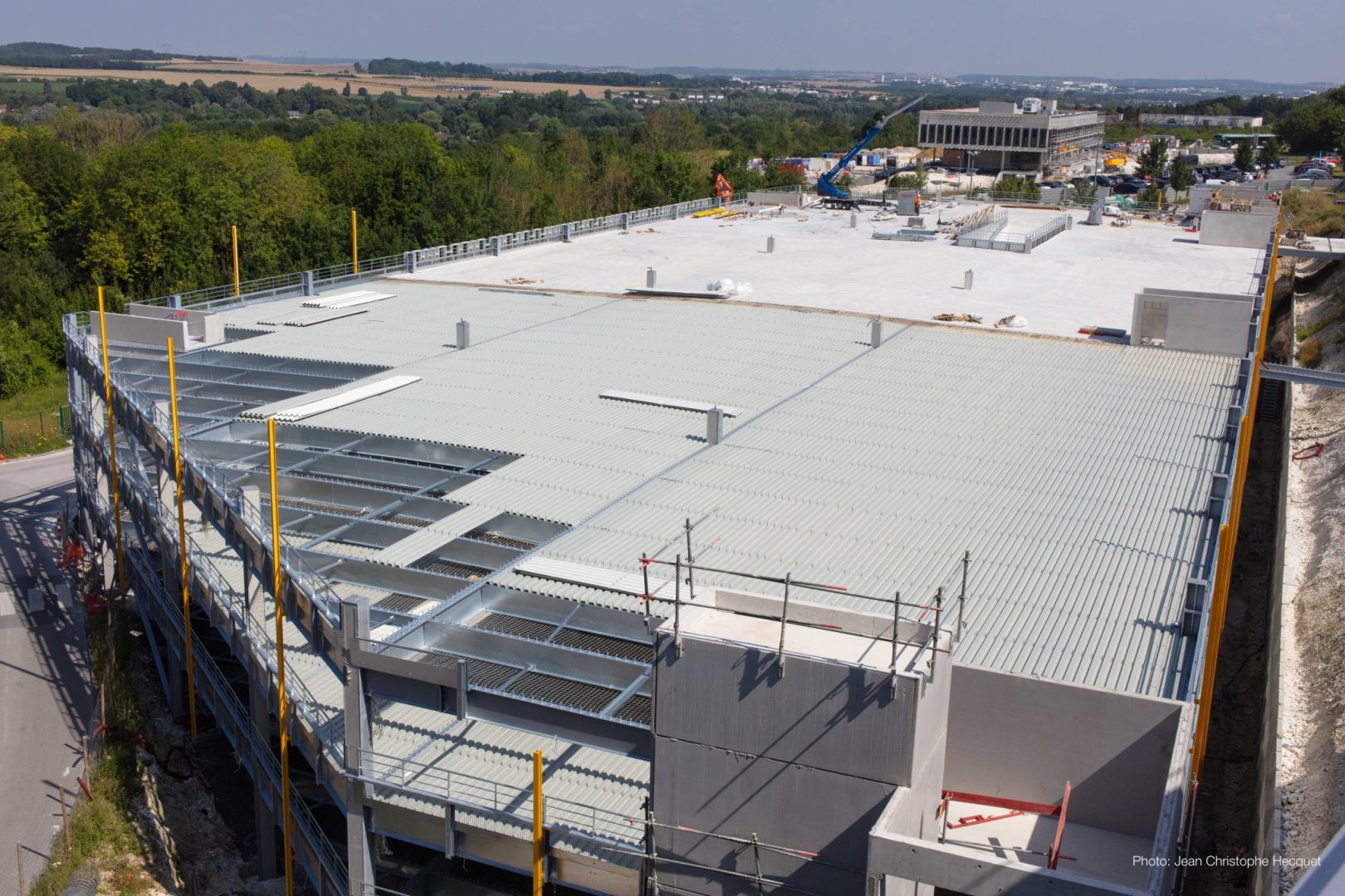 Pour y répondre, nous avons équipé deux niveaux du parking souterrain et conçu un parking en silo de quatre niveaux, exclusivement réservé aux salariés. Moderne et parfaitement intégré à son environnement, cet ouvrage, conçu en structure mixte métal-béton, allie fonctionnalité et esthétisme.
